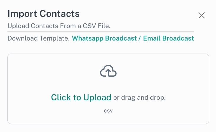 - Back in Messcat, click Import again. Browse and select your prepared CSV file, then click Upload to begin importing your contacts.