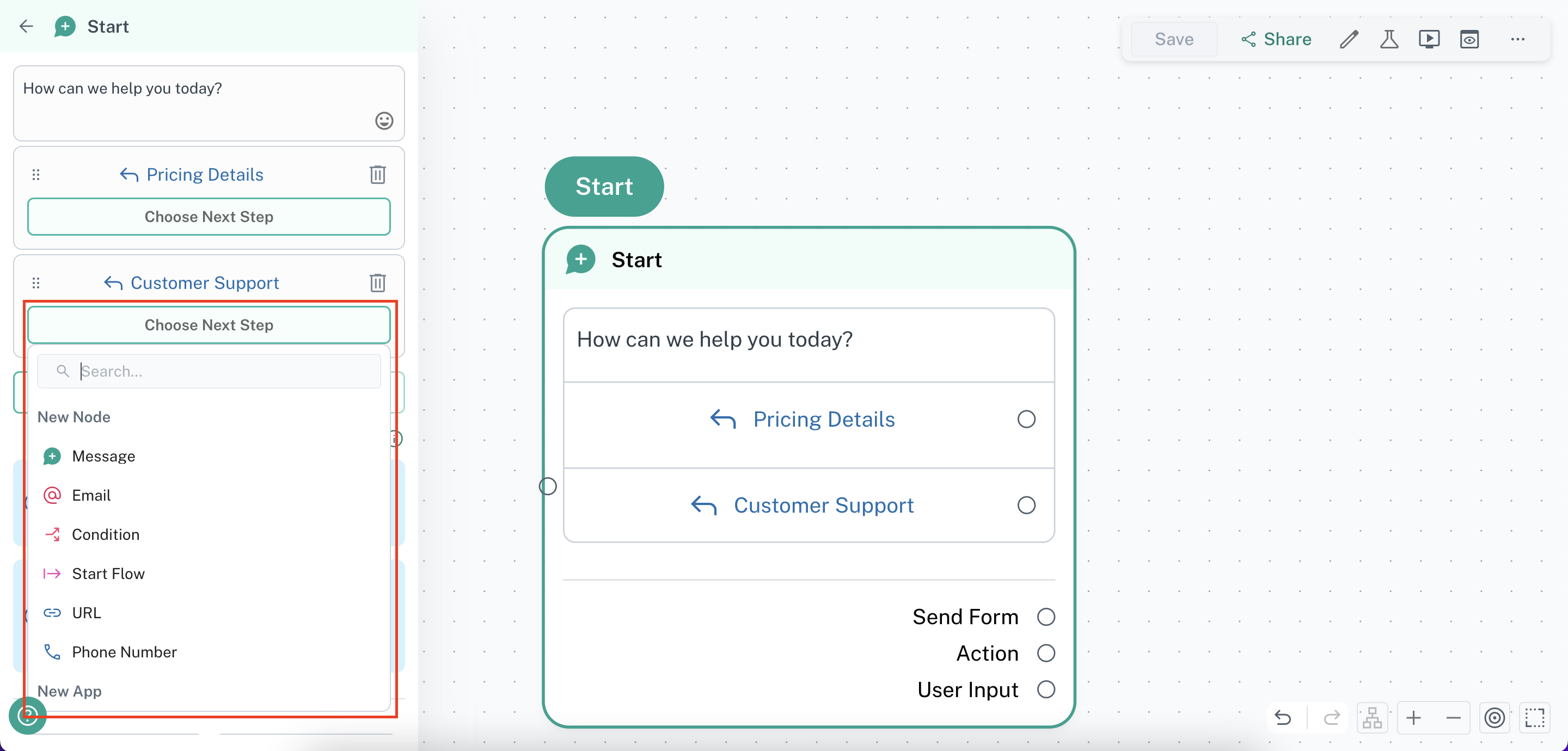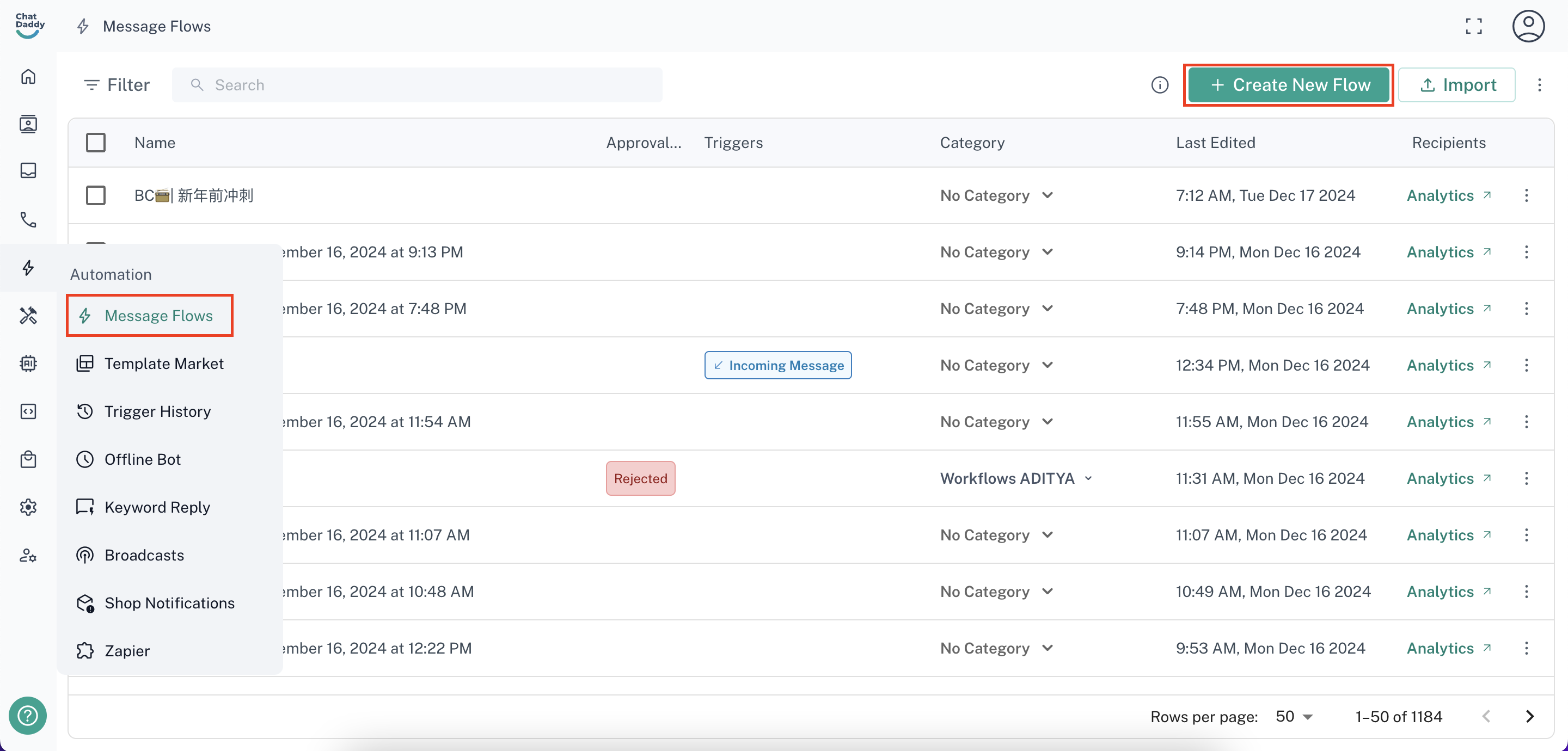 - Go to “Message Flows” and click on “+ Create New Form”.